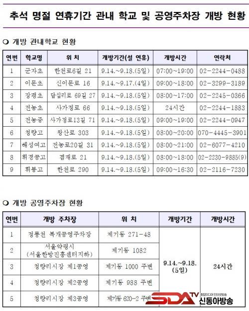 Ãß¼® ¿¬ÈÞµ¿¾È ¹«·á °³¹æÇÏ´Â Çб³ ÁÖÂ÷ÀåÀº ±ºÀÚÃʵîÇб³¸¦ Æ÷ÇÔÇÑ ÃÊ¡¤Áß¡¤°íµîÇб³ 9°³¼ÒÀ̸ç, °ø¿µÁÖÂ÷ÀåÀº Á¤¸ªÃµ º¹°³°ø¿µÁÖÂ÷Àå µî 5°³¼ÒÀÌ´Ù. °³¹æ½Ã°£Àº Àå¼Òº°·Î »óÀÌÇϹǷΠ¹Ýµå½Ã È®ÀÎ ÈÄ ÀÌ¿ëÇØ¾ß ÇÑ´Ù.
