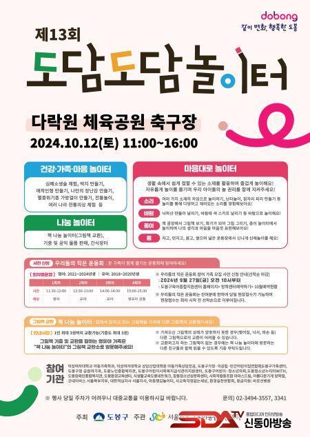 ¿ÃÇØ·Î Á¦13ȸ¸¦ ¸ÂÀº ¡¸µµ´ãµµ´ã ³îÀÌÅÍ¡¹´Â µµºÀ±¸°¡ ÁÖÃÖÇÏ°í µµºÀ±¸À°¾ÆÁ¾ÇÕÁö¿ø¼¾ÅͰ¡ ÁÖ°üÇÏ´Â ÃàÁ¦·Î ´ö¼º¿©ÀÚ´ëÇб³, µµºÀÀå¾ÖÀÎÁ¾ÇÕº¹Áö°ü, ´ëÇÑÀû½ÊÀÚ ¼­¿ïÁö»ç, ±Â³×À̹ö½º µî ÃÑ 19°³ÀÇ ¹Î¡¤°ü ´Üü°¡ Âü¿©ÇÑ´Ù.