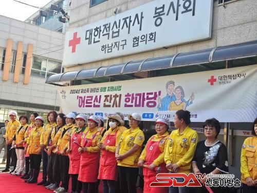 Çϳ²Áö±¸ÇùÀÇȸ ¼Ò¼Ó Àû½ÊÀÚ ºÀ»ç¿ø 130¸íÀº 4ÀÏ¿¡ °ÉÃļ­ ¾î¸£½ÅµéÀ» À§ÇÑ ½Ä»ç¿Í °ø¿¬À» ÁغñÇßÀ¸¸ç, À̳¯ ¸¸µç ¹Ø¹ÝÂù(»ç°ñ±¹, ¹«±¹, Àü(°íÃßÀü,±èÄ¡Àü,²¢ÀÙÀü,µ¿±×¶û¶¯), µµ¶óÁö³ª¹°, ¸êÄ¡²Ê¸®ººÀ½)Àº Âü¼® ¾î¸£½Å 130¸íÀ» Æ÷ÇÔÇÏ¿© Çϳ²½Ã °ü³» Ãë¾à°èÃþ 200¼¼´ë¿¡°Ô Àü´ÞµÇ¾ú´Ù.