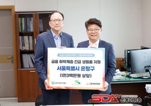 ±ÝÀ¶»ê¾÷°øÀÍÀç´Ü¿¡¼ Áö¿øÇÏ´Â ¡®±ÝÀ¶ Ãë¾à°èÃþ ±ä±Þ »ýÇÊǰ Áö¿ø»ç¾÷¡¯¿¡¼ ½Å¿ëȸº¹À§¿øÈ¸´Â ¼¿ïÁö¿ª 1È£·Î ÀºÆò±¸ °ü³» ±ÝÀ¶ Ãë¾à°èÃþ 46°¡±¸¿¡ ³¹æ¿ëǰÀ¸·Î ±Ý 1õ3¹é¸¸ ¿ø »ó´çÀÇ Àü±â¸ÅÆ®, °Ü¿ïÀ̺Ҽ¼Æ®¸¦ Àü´ÞÇß´Ù.