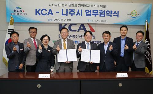 Çù¾à½Ä¿¡´Â À±º´Å ³ªÁÖ½ÃÀå°ú ÀÌ»óÈÆ KCA ¿øÀåÀ» ºñ·ÔÇØ °ü°èÀÚ 8¸íÀÌ Âü¼®ÇÏ¿© Çù·ÂÀÇ Àǹ̸¦ ´õÇß´Ù. ¾ç ±â°üÀº Çù¾àÀ» ¹ÙÅÁÀ¸·Î Á¤º¸ °øÀ¯, °øµ¿ ÇÁ·ÎÁ§Æ® ÃßÁø, ¸ÂÃãÇü º¹Áö ÇÁ·Î±×·¥ °³¹ß µîÀ» ÅëÇØ ½ÇÁúÀûÀÎ Áö¿ª»çȸ º¹Áö Çâ»ó¿¡ ±â¿©ÇÏ°í »ó»ý ¸ðµ¨ ±¸Ãà¿¡ Èû¾µ °èȹÀÌ´Ù.