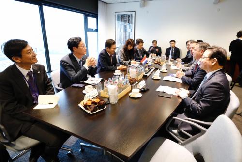 ÇÑÆí Á¤½ÃÀåÀº »êÀںο¡¼­ ÃßÁøÁßÀΠ÷´Ü¹ÝµµÃ¼±â¼ú¼¾ÅÍ(Çѱ¹Çü IMEC) À¯Ä¡¸¦ À§ÇØ À̹ø ³×´ú¶õµå ¼ø¹æ Áß ¼¼°è ÃÖ°íÀÇ ¹ÝµµÃ¼¿¬±¸¼Ò º§±â¿¡ IMECÀ» ¹æ¹®ÇØ IMEC °ü°èÀÚ¸¦ ¸¸³ª ÁßÁ¡ÀûÀ¸·Î ÁغñÇØ¾ß ÇÒ »çÇ×, ¿¬±¸¼Ò ¿î¿µ¹æ½Ä µî¿¡ ´ëÇØ¼­ ÀÚ¹®À» ±¸Çß´Ù.