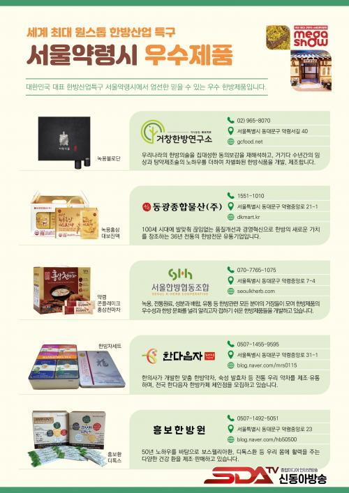 ¼­¿ïÇѹæÁøÈï¼¾ÅÍ °ü°èÀÚ´Â ¡°À̹ø ¹Ú¶÷ȸ¸¦ ÅëÇØ ¼­¿ï¾à·É½ÃÀÇ ¶Ù¾î³­ ÇÑ¹æ »óǰÀ» ´õ ¸¹Àº ¼ÒºñÀڵ鿡°Ô ¾Ë¸®°í, µ¿´ë¹®±¸ Çѹæ»ê¾÷ÀÇ ¼ºÀåÀ» ÃËÁøÇÏ´Â °è±â¸¦ ¸¸µé°íÀÚ ÇÑ´Ù¡±¸ç ¡°¾ÕÀ¸·Îµµ ¼­¿ï¾à·É½Ã¿ÍÀÇ ±ä¹ÐÇÑ Çù·ÂÀ» ÅëÇØ ´Ù¾çÇÑ ÆÇ·Î¸¦ ¹ß±¼Çϰí, Çѹæ»ê¾÷ÀÇ °¡Ä¡¸¦ ³Î¸® ÀüÆÄÇϰڴ١±°í ¹àÇû´Ù.