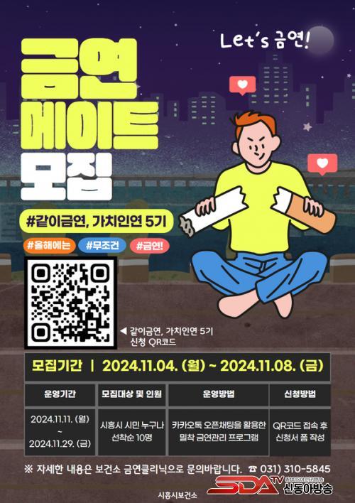 ¡®°°ÀÌ ±Ý¿¬, °¡Ä¡Àο¬¡¯Àº ±Ý¿¬ Ŭ¸®´Ð µî·Ï ÈÄ Á÷Àå»ýȰÀ̳ª °³ÀÎ ÀÏÁ¤ µîÀÇ ÀÌÀ¯·Î ±Ý¿¬ Ŭ¸®´ÐÀ» Áßµµ Æ÷±âÇÏ´Â »ç·Ê¸¦ ÁÙÀ̱â À§ÇØ, ºñ´ë¸é ¹æ½ÄÀ¸·Î ¿î¿µµÇ´Â ÇÁ·Î±×·¥ÀÌ´Ù. À̹ø 5±â ÇÁ·Î±×·¥Àº ¼±Âø¼øÀ¸·Î 10¸íÀ» ¸ðÁýÇϸç, Âü¿© Èñ¸ÁÀÚ´Â ½ÃÈï½Ã ±Ý¿¬ Ŭ¸®´Ð(031-310-5845)°ú È«º¸¹°ÀÇ Å¥¾Æ¸£(QR)Äڵ带 ÅëÇØ ½ÅûÇÒ ¼ö ÀÖ´Ù.