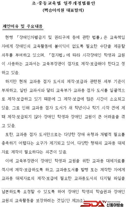 ¡à ±¹È¸ ±³À°À§¿øÈ¸ ¹é½Â¾Æ ÀÇ¿ø(´õºÒ¾î¹ÎÁÖ´ç)ÀÌ ´ëÇ¥ ¹ßÀÇÇÑ ¡¸ÃÊ¡¤ÁߵÀ°¹ý °³Á¤¾È¡¹Àº Àå¾ÖÇлý°ú ±³¿øÀ» À§ÇÑ ±³°ú¿ë µµ¼ÀÇ ´ëüÀڷḦ Àû½Ã¿¡ º¸±ÞÇÒ ±³À°ºÎ Àå°üÀÇ Àǹ«¸¦ ±ÔÁ¤Çϰí, µðÁöÅÐ ÆÄÀÏÀ» ¿äûÇÒ ¼ö ÀÖÀ¸¸ç, ¿äû¹ÞÀº ¾÷ü´Â Ưº°ÇÑ »çÀ¯°¡ ¾ø´Â ÇÑ ³³º»¿äû¿¡ ÀÀÇØ¾ß ÇÑ´Ù´Â ³»¿ëÀ» ´ã°í ÀÖ´Ù.