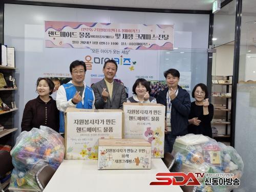 µ¿±¸ÀÚ¿øºÀ»ç¼¾ÅÍ´Â ¸Å³â įº¸µð¾Æ µî Áö¿øÀÌ ÇÊ¿äÇÑ ÇØ¿Ü ¾ÆÀ̵éÀ» À§ÇØ ºÀÁ¦ Àç´ÉÀ» °¡Áø ÀÚ¿øºÀ»çÀÚµéÀÌ ¸é»ý¸®´ë, ¸é¸¶½ºÅ© µî ÇÚµå¸ÞÀÌµå ¹°Ç°À» ¸¸µé¾î Àü´ÞÇϰí ÀÖÀ¸¸ç, ¿ÃÇØµµ ¾à 5°³¿ù µ¿¾È ¸é»ý¸®´ë, ¹æ¼öÆÄ¿ìÄ¡ ¼¼Æ®¿Í ¹æ¼ö¿¡ÄÚ¹éÀ» ¸¸µé¾ú´Ù.