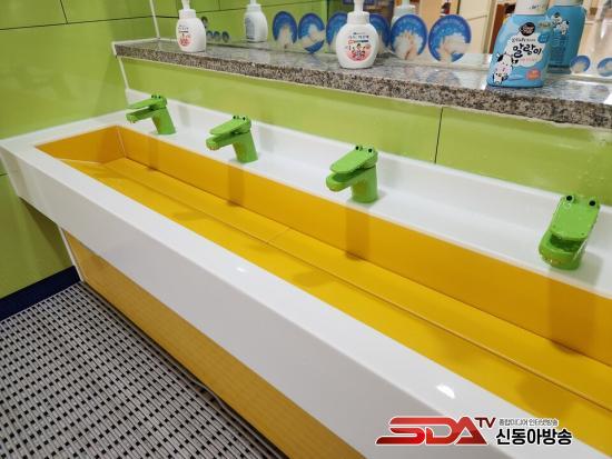 ±âÁ¸ÀÇ ¼¼¸é´ë´Â À¯¾ÆÀÇ Å°¿¡ ºñÇØ ³ôÀ̰¡ ³·°í, ¼ÕÀ» ¾Ä´Â °ø°£ÀÌ Á¼¾Æ »ç¿ë¿¡ ºÒÆíÇÔÀÌ ÀÖ¾ú´Ù. À̸¦ ÇØ°áÇϱâ À§ÇØ À¯¾ÆÀÇ ½Åü Á¶°ÇÀ» °í·ÁÇϸ鼵µ ½É¹ÌÀûÀ¸·Î ¼³°èµÈ ¼¼¸é´ë¸¦ ¼³Ä¡ÇÏ¿©, Æí¾ÈÇϰí Áñ°Å¿î ºÐÀ§±â ¼Ó¿¡¼ ¼Õ ¾Ä±â ±³À°À» ÁøÇàÇϰí ÀÖ´Ù.