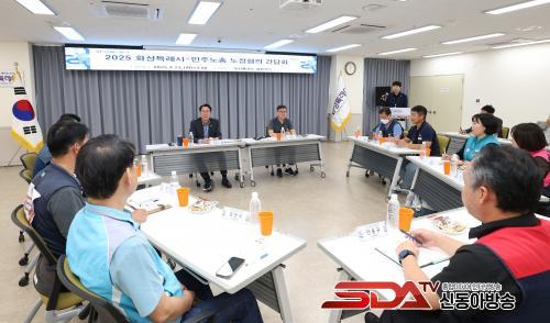 Á¤¸í±Ù ȼºÆ¯·Ê½ÃÀåÀº ¡°¿À´Ã °£´ãȸ´Â ȼºÆ¯·Ê½Ã¿Í ¹ÎÁÖ³ëÃÑÀÌ Ã³À½À¸·Î ÇÑÀÚ¸®¿¡ ¸ð¿© °ø½ÄÀûÀÎ ´ëÈÀÇ ÀåÀ» ¸¶·ÃÇß´Ù´Â Á¡¿¡¼ Å« Àǹ̰¡ ÀÖ´Ù¡±¸ç ¡°¾ÕÀ¸·Îµµ ³ëµ¿ ÇöÀåÀÇ ¸ñ¼Ò¸®¸¦ ½ÃÁ¤¿¡ Ãæ½ÇÈ÷ ¹Ý¿µÇØ, ±â¾÷Çϱâ ÁÁÀº µµ½ÃÀÌÀÚ ÀÏÇϱâ ÁÁÀº µµ½Ã·Î ÇÔ²² ¸¸µé¾î°¡°Ú´Ù¡±°í ¸»Çß´Ù.