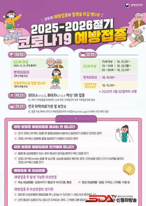 Á¢Á¾Àº ¿¬·É´ëº°·Î ¼øÂ÷ ÁøÇàµÇ¸ç, ¡ã75¼¼ ÀÌ»ó ¾î¸£½ÅÀº 10¿ù 15ÀϺÎÅÍ ¡ã70~74¼¼´Â 10¿ù 20ÀϺÎÅÍ ¡ã65~69¼¼´Â 10¿ù 22ÀϺÎÅÍ Á¢Á¾ÀÌ ½ÃÀ۵ȴÙ.