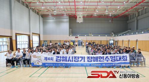 ±èÇØ½ÃÀå¾ÖÀμö¿µ¿¬¸ÍÀÌ ÁÖÃÖ¡¤ÁÖ°üÇÏ°í ±èÇØ½Ã¿Í ±èÇØ½ÃÀå¾ÖÀÎüÀ°È¸°¡ ÈÄ¿øÇÏ´Â ´ëȸ´Â ±èÇØ½Ã»Ó¸¸ ¾Æ´Ï¶ó °æ³²µµ¸¦ ´ëÇ¥ÇÏ´Â Àå¾ÖÀÎ ¼ö¿µ´ëȸ·Î ÀÚ¸®¸Å±èÇß´Ù. À̹ø ´ëȸ¿¡´Â ±èÇØ½Ã¸¦ ºñ·ÔÇØ °ÅÁ¦½Ã, »çõ½Ã, ¾ç»ê½Ã, ÁøÁÖ½Ã, â¿ø½Ã, Å뿵½Ã µîÁö¿¡¼ 166¸íÀÇ Àå¾ÖÀÎ ¼±¼ö°¡ Âü°¡ÇØ ½ÂÆÐ¸¦ ³Ñ¾î ¿ìÁ¤°ú ÈÇÕÀ» ³ª´©´Â ¶æ±íÀº ½Ã°£À» °¡Á³´Ù.