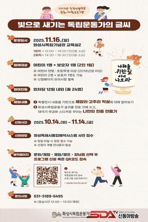 Âü°¡ÀÚ´Â ¾î¸°À̸¦ Æ÷ÇÔÇÑ °¡Á·À̸ç, ¿À´Â 14ÀϺÎÅÍ 11¿ù 14ÀϱîÁö ȼº½ÃÅëÇÕ¿¹¾à½Ã½ºÅÛ¿¡¼ »çÀü ¿¹¾à ½ÅûÀ» ÇÒ ¼ö ÀÖ´Ù. Á¤¿ø ¹Ì´Þ ½Ã ÇöÀå Á¢¼ö·Îµµ Âü¿©ÇÒ ¼ö ÀÖ´Ù.