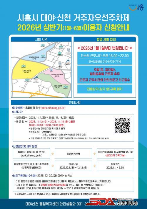 [½Åµ¿¾Æ¹æ¼Û ½ÃÈï½Ã=À̽ŵ¿±âÀÚ] ½ÃÈï½Ã ´ë¾ß¤ý½Åõ ÇàÁ¤º¹Áö¼¾ÅÍ(¼¾ÅÍÀå ¾ö°è¿ë)´Â ÁÖÂ÷ °ø°£ÀÌ ºÎÁ·ÇÑ ¿øµµ½ÉÀÇ ÁÖÂ÷³­À» ÇØ¼ÒÇϰí, ¹«Áú¼­ÇÑ µµ·Î ÁÖÂ÷ ¹®Á¦¸¦ °³¼±ÇϰíÀÚ ¡®°ÅÁÖÀÚ¿ì¼±ÁÖÂ÷Á¦¡¯¸¦ ½ÃÇàÇϰí ÀÖÀ¸¸ç 2026³â »ó¹Ý±â ÀÌ¿ëÀÚ ½ÅûÀ» 11¿ù 1ÀϺÎÅÍ ÁøÇàÇÑ´Ù.