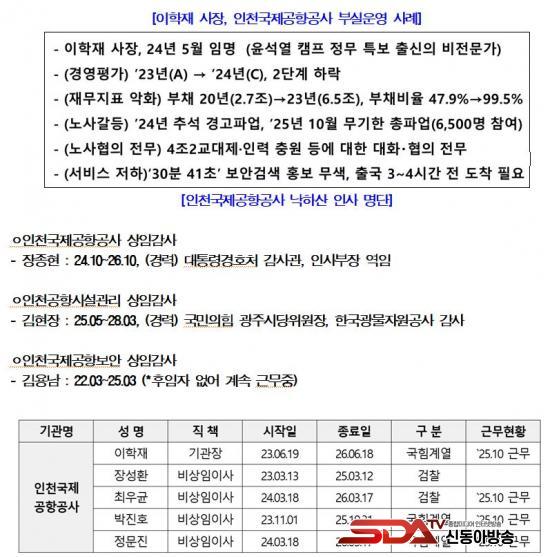 ÇÑÆí, Á¤ ÀÇ¿øÀº ¡°°øÇ×°ø»ç º»»ç »çÀå, °¨»ç»Ó ¾Æ´Ï¶ó »êÇÏ ÀÚȸ»ç¿¡µµ Á¤Ä¡±Ç¡¤º¸Àº Àλ簡 ÀÕµû¶ó ³»Á¤µÇ¸ç ³»ºÎ ¹Ý¹ßÀÌ °Å¼¼´Ù¡±°í ¹àÇû´Ù. ½ÇÁ¦·Î ÀÎõ°øÇ׽ü³°ü¸®, ÀÎõ°øÇ׺¸¾È, ÀÎõ°øÇ׿¡³ÊÁö µî ÁÖ¿ä ÀÚȸ»ç¿¡ ±¹¹ÎÀÇÈû Ãâ½Å ȤÀº ´ëÅë·É½Ç ÀλçµéÀÌ ÀÓ¸í¡¤³»Á¤µÇ¾î Àü¹®¼ºÀÌ ¾ø°í ³«ÇÏ»êÀ̶ó´Â ³í¶õÀÌ À̾îÁö°í ÀÖ´Ù.