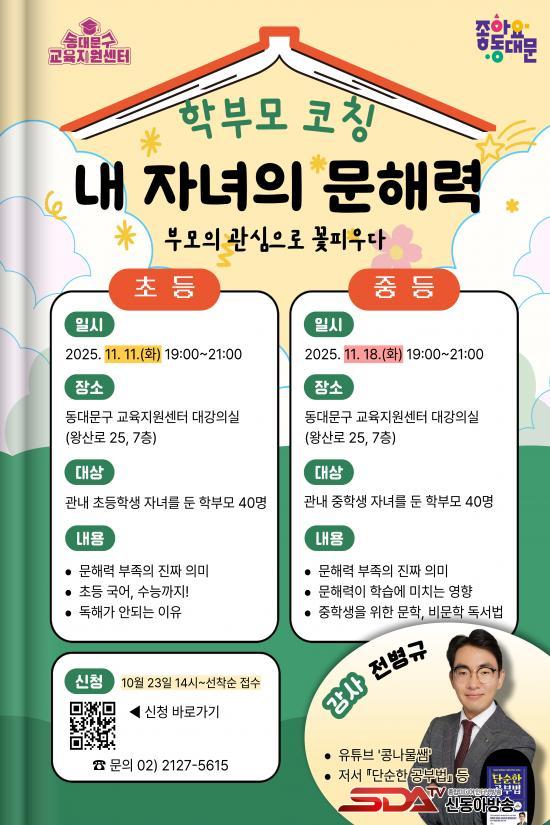 ¡®³» ÀÚ³àÀÇ ¹®Çط Ư°­¡¯(11¿ù 11ÀÏ¡¤18ÀÏ)Àº ÃÊ¡¤Áßµî Çкθ𠰢 40¸íÀ» ´ë»óÀ¸·Î, ÀÚ³à ÇнÀÀÇ ±âÃʰ¡ µÇ´Â ¹®ÇØ·Â Çâ»ó ¹æ¹ýÀ» ´Ù·é´Ù. ¡®¹®ÇØ·Â ºÎÁ·ÀÇ ÁøÂ¥ Àǹ̡¯, ¡®µ¶ÇØ·Â Çâ»ó Àü·«¡¯ µî ½ÇÁúÀû ÄÚĪÀ» ÅëÇØ ºÎ¸ð°¡ ÀÚ³àÀÇ ÇнÀÀ» Áö¿øÇÏ´Â ¹æ¹ýÀ» ¹è¿î´Ù.