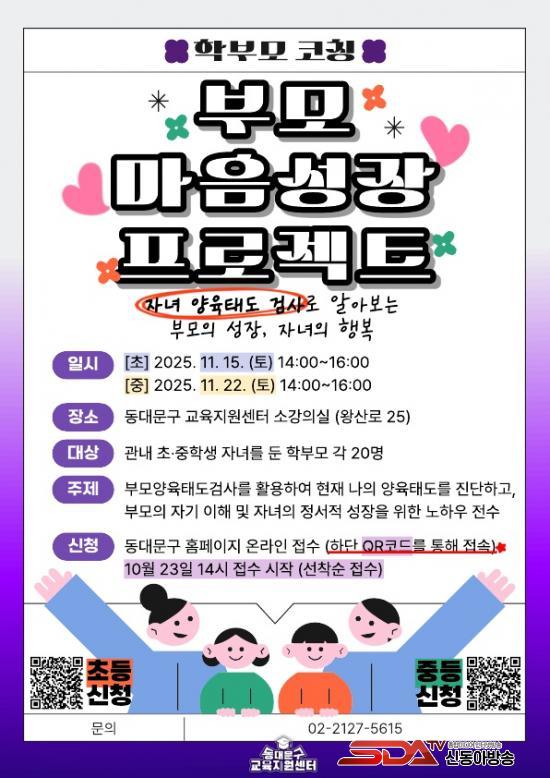 À̹ø ÇÁ·Î±×·¥Àº ¡®¹è¿ò°ú ¼ºÀåÀ» ÀÕ´Â ±³À°µµ½Ã µ¿´ë¹®¡¯ ºñÀü ¾Æ·¡, Áö³­ 7¿ù È®Àå ÀÌÀüÇÑ µ¿´ë¹®±¸ ±³À°Áö¿ø¼¾ÅÍ(¿Õ»ê·Î 25, 7Ãþ)¿¡¼­ ÁøÇàµÈ´Ù. ±³À°Áö¿ø¼¾ÅÍ´Â ÀÌ´Þ Çкθð ´ë»ó ¹®ÇØ·Â ¹× Á¤¼­ÄÚĪ Ư°­, ÁßÇб³ 3Çг⠴ë»ó ޱ¸°ú¸ñ(ÅëÇÕ»çȸ¡¤ÅëÇÕ°úÇÐ) ÇнÀ¹ý Ư°­ µîÀ» ¸¶·ÃÇØ ÇнÀ°ú Á¤¼­°¡ Á¶È­¸¦ ÀÌ·ç´Â ±³À° ȯ°æÀ» Áö¿øÇÑ´Ù.