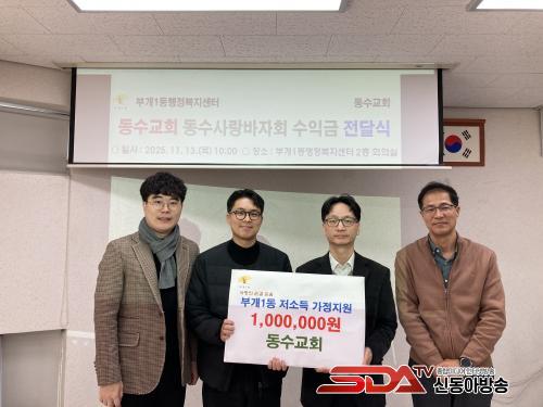 ºÎ°³1µ¿, µ¿¼ö±³È¸·ÎºÎÅÍ ¹ÙÀÚȸ ¼öÀÍ±Ý 100¸¸¿ø ±âŹ ¹Þ¾Æ |