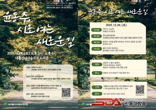 ¼º±Õ°ü´ëÇб³ ±¹¾î±¹¹®Çаú Á¤¿ìÅà ±³¼ö°¡ ¡®À±µ¿ÁÖ ½ÃÀÎÀ» ÅëÇØ ¹Ù¶óº¸´Â ¿ì¸®ÀÇ »õ·Î¿î ±æ¡¯À̶ó´Â ÁÖÁ¦·Î °¿¬À» ÆîÄ£´Ù. ÀÌ °¿¬À» ÅëÇØ À±µ¿ÁÖ ½ÃÀÎÀÇ ¹®ÇÐÁ¤½ÅÀ» ±â¸®¸ç ¿À´ÃÀÇ »îÀ» ¼ºÂûÇÏ°í ¹Ì·¡ÀÇ »õ·Î¿î ±æÀ» ¸ð»öÇÏ´Â °è±â¸¦ Á¦°øÇÑ´Ù.