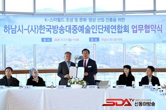 ÀÌÇöÀç Çϳ²½ÃÀåÀº¡°¹æ¼Û¡¤´ëÁß¿¹¼ú°è¸¦ ´ëÇ¥ÇÏ´Â Çѱ¹¹æ¼Û´ëÁß¿¹¼úÀδÜü¿¬ÇÕȸ¸¦ ºñ·ÔÇÑ ÁÖ¿ä´Üü¿Í À̹ø Çù¾à½ÄÀ» °³ÃÖÇÏ°Ô µÇ¾î Å« ¿µ±¤À̸ç, ¾ÕÀ¸·Î K-½ºÅ¸¿ùµå¸¦ ±¹°¡Àû ÇÁ·ÎÁ§Æ®·Î Ű¿ö³»´Â ±â¹ÝÀÌ µÉ °Í¡±ÀÌ¶ó ¸»Çϸç, ¡°K-ÄÃó º¹ÇÕ ÄÞÇ÷º½º(K-½ºÅ¸¿ùµå)¸¦ ¼º°øÀûÀ¸·Î ÃßÁøÇØ ´ëÇѹα¹ÀÌ ¹®È»ê¾÷ÀÇ Áß½ÉÁö·Î µµ¾àÇÏ´Â µ¥ ±â¿©Çϰí, ¹æ¼Û¿¬¿¹ Àü¹®°¡µé°ú Çù¾÷Çϸç ÃÖ°íÀÇ ±Û·Î¹ú ÄÜÅÙÃ÷ Á¦ÀÛ È¯°æÀ» ¸¸µé°Ú´Ù¡±°í ÀÇÁö¸¦ ¹àÇû´Ù.