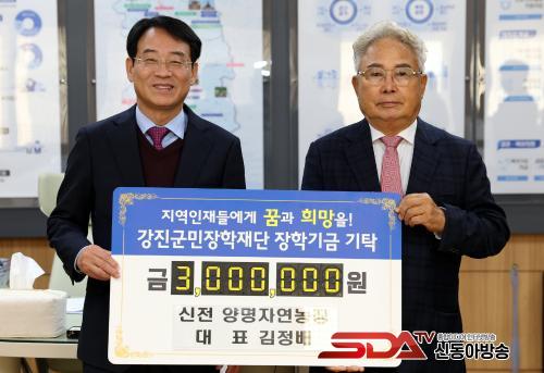 ½ÅÀü¸é¿¡ ÀÖ´Â ¾ç¸íÀÚ¿¬³óÀåÀÇ ±èÁ¤¹è ´ëÇ¥´Â 2016³âºÎÅÍ ²ÙÁØÈ÷ ÀåÇбÝÀ» ±âÅ¹ÇØ ÇöÀç±îÁö ÃÑ 2õ1¹é¸¸ ¿øÀ» ±âŹ Çß´Ù. ¾ç¸íÀÚ¿¬³óÀåÀº ¿À¸® »çÀ° ±â¼ú»Ó¸¸ ¾Æ´Ï¶ó Çлýµé°ú ±º¹ÎµéÀÇ º¹Áö µî¿¡µµ ½Å°æÀ» ¾²¸ç ´Ù¹æ¸éÀ¸·Î ³ë·ÂÇϰí ÀÖ´Ù. ±èÁ¤¹è ´ëÇ¥´Â ¡°Áö¿ª ÀÎÀçÀÇ ¼ºÀåÀÌ °ð Áö¿ªÀÇ ÈûÀÌ´Ù. ¹è¿òÀ» ÅëÇØ ¼ºÀåÇÑ ÀÎÀçµéÀÌ ´Ù½Ã Áö¿ªÀ» ºû³» ÁÖ±æ ¹Ù¶õ´Ù¡±°í ¸»Çß´Ù.