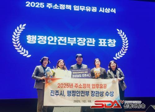 [½Åµ¿¾Æ¹æ¼Û °æ³²ÁøÁÖ=³²±Ã¿µ±â±âÀÚ] ÁøÁֽô ÇàÁ¤¾ÈÀüºÎ°¡ ÁÖ°üÇÑ ¡®2025³â ÁÖ¼ÒÁ¤Ã¥ ¾÷¹«À¯°ø¡¯ÀÇ ¿ì¼ö±â°üÀ¸·Î ¼±Á¤µÅ ÇàÁ¤¾ÈÀüºÎ Àå°ü ǥâÀ» ¼ö»óÇß´Ù°í ¹àÇû´Ù.