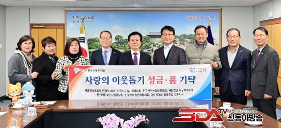 À̹ø ±âŹ½Ä¿¡¼ ±ÝÆ÷¿µ³óÁ¶ÇÕ¹ýÀÎ(¾ËºÎÀÚÁý)(´ëÇ¥ ¹®±¹µ¿)¿¡¼ ¼º±Ý 1,000¸¸ ¿ø°ú °è¶õ 30±¸ 2,000ÆÇ(ȯ°¡¾× 1,400¸¸ ¿ø »ó´ç), ÁøÁֽüöÃâ±â¾÷ÇùÀÇȸ(ȸÀå ¼ºÇö¼®)¿¡¼ ¼º±Ý 1,500¸¸ ¿ø, ÁøÁÖ¼ºÎ³ó¾÷Çùµ¿Á¶ÇÕ(Á¶ÇÕÀå ·ùÀç¼ö)¿¡¼ ¹é¹Ì 10kg 303Æ÷(ÃÑ 3,030kg, ȯ°¡¾× 1,000¸¸ ¿ø »ó´ç), (»ç)¹«±ÃȺ¹Áö¿ùµå(´ëÇ¥ Á¤Àçȯ)¿¡¼ ¼º±Ý 500¸¸ ¿ø, Æò»ý»ç¶ûÇϴ»ç¶÷µé¸ðÀÓ(ȸÀå À¯Áø)¿¡¼ ¼º±Ý 300¸¸ ¿ø, ÁøÁֽÿ©¼º´ÜüÇùÀÇȸ(ȸÀå À̺¸È)¿¡¼ ¼º±Ý 230¸¸ ¿ø, À̺ñƼ¿¡½º Çùµ¿Á¶ÇÕ ÁøÁÖÁö±¹(¼¾ÅÍÀå ±èÁö¿ø)¿¡¼ ¼º±Ý 200¸¸ ¿øÀ» Áö¿ª»çȸ ¾î·Á¿î ÀÌ¿ôÀ» µ½±â À§ÇØ ±âŹÇß´Ù.