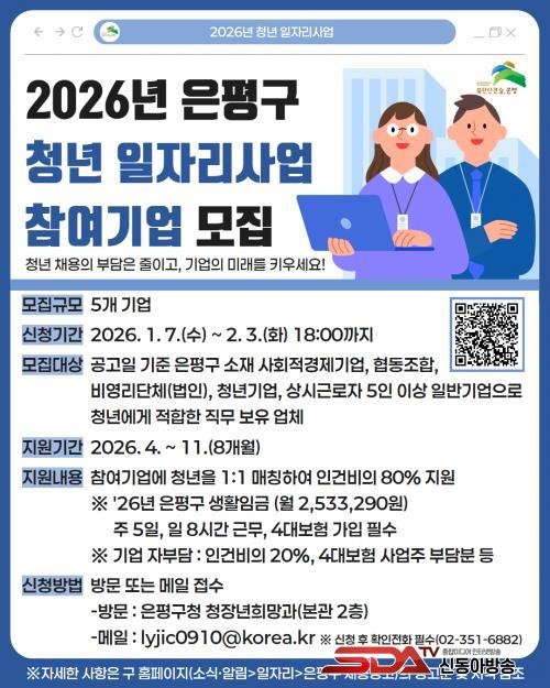 [½Åµ¿¾Æ¹æ¼Û ÀºÆò±¸=À̽ŵ¿±âÀÚ] ¼­¿ï ÀºÆò±¸´Â 7ÀϺÎÅÍ ³»´Þ 3ÀϱîÁö ¡®2026³â û³â ÀÏÀÚ¸®»ç¾÷¡¯¿¡ Âü¿©ÇÒ ±â¾÷À» ¸ðÁýÇÑ´Ù°í ¹àÇû´Ù.