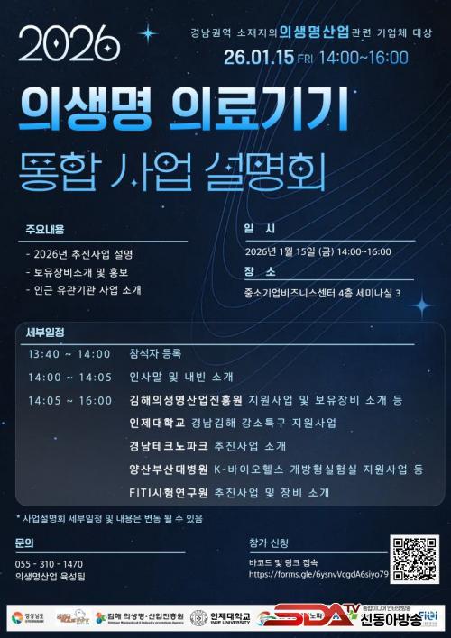 ±èÇØÀÇ»ý¸í¡¤»ê¾÷ÁøÈï¿ø, ¿À´Â 15ÀÏ ¡¸2026³â ÀÇ»ý¸í ÀÇ·á±â±â ÅëÇÕ »ç¾÷¼³¸íȸ¡¹°³ÃÖ