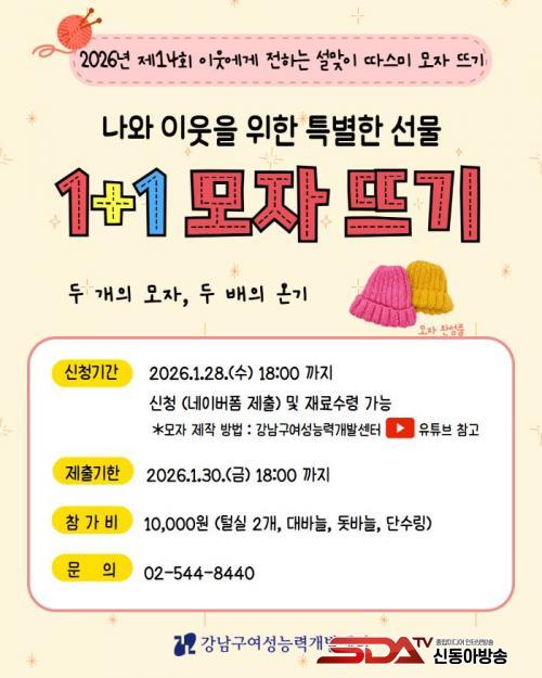 Á¶¼º¸í °­³²±¸Ã»ÀåÀº ¡°14³â° À̾îÁ® ¿Â µû½º¹Ì ¸ðÀÚ ¶ß±â´Â ÁÖ¹ÎÀÇ ¼ÕÀ¸·Î ¸¸µå´Â °­³²ÀÇ ´ëÇ¥ÀûÀÎ °Ü¿ï ³ª´®¡±À̶ó¸ç ¡°ÁÖ¹ÎÀÌ Á÷Á¢ ¶á ¸ðÀÚ°¡ ¾î¸£½Å°ú Àå¾ÖÀÎ µî Ãë¾à°èÃþÀÇ °Ü¿ïö º¸¿Â°ú °Ç°­¿¡ º¸ÅÆÀÌ µÇ±æ ¹Ù¶õ´Ù¡±°í ¸»Çß´Ù.