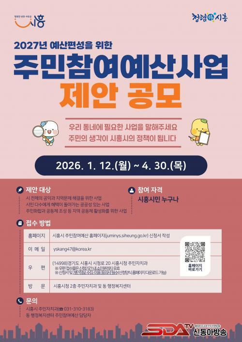 °ø¸ð ½ÅûÀº ¡®½ÃÈï½Ã ÁÖ¹ÎÂü¿©¿¹»ê ´©¸®Áý(https://juminys.siheung.go.kr/)¿¡¼­ ÇÒ ¼ö ÀÖÀ¸¸ç ÀüÀÚ¿ìÆí(yskang47@korea.kr)À̳ª ¿ìÆí, ½ÃÈï½Ãû ÁÖ¹ÎÀÚÄ¡°ú ¹× µ¿ ÇàÁ¤º¹Áö¼¾ÅÍ¿¡ ¹æ¹®Çؼ­ ½ÅûÇÒ ¼ö ÀÖ´Ù.