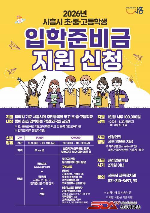 Áö¿ø ´ë»óÀº ÀÔÇÐÀÏ(3¿ù 3ÀÏ) ±âÁØ, ½ÃÈï½Ã¿¡ ÁÖ¼Ò¸¦ µÐ ÃÊÁß°í ½ÅÀÔ»ý 1¸¸ 6õ¿© ¸í(¿Ü±¹ÀÎ Æ÷ÇÔ)ÀÌ´Ù. ½Ã´Â À̵鿡°Ô 1Àδç 10¸¸ ¿ø¾¿ ½ÃÈï Áö¿ªÈ­Æó ¸ð¹ÙÀÏ ¡®½Ã·ç¡¯·Î Áö±ÞÇÑ´Ù.
