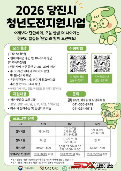 ¸ðÁý ´ë»óÀº »ç¾÷ ½ÅûÀÏ ±âÁØ 6°³¿ù ÀÌ»ó Ãë¾÷¡¤Ã¢¾÷¡¤±³À°¡¤Á÷¾÷ÈÆ·Ã¿¡ Âü¿©ÇÏÁö ¾ÊÀº ±¸Á÷ ´Ü³ä û³â, ÀÚ¸³ Áغñ û³â, û¼Ò³âº¹Áö½Ã¼³ ÀÔ¡¤Åð¼Ò û³â, ºÏÇÑ ÀÌÅ» û³â µîÀ¸·Î, 2026³â ÇÑ ÇØ µ¿¾È ÃÑ 130¸íÀÇ Ã»³âÀ» Áö¿øÇÑ´Ù.