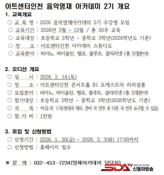[½Åµ¿¾Æ¹æ¼Û ÀÎõ=À±¹Î½Ä±âÀÚ]ÀÎõ°æÁ¦ÀÚÀ¯±¸¿ªÃ»Àº ¾ÆÆ®¼¾ÅÍÀÎõÀÇ Å¬·¡½Ä ¿µÀç ¹ß±¼¡¤À°¼º ÇÁ·Î±×·¥ ¡®À½¾Ç¿µÀç ¾ÆÄ«µ¥¹Ì¡¯ 2±â ¼ö°­»ý ¼±¹ßÀ» À§ÇÑ °ø°³ ¿Àµð¼ÇÀ» ¿À´Â 2¿ù 14ÀÏ¿¡ °³ÃÖÇÑ´Ù°í ¹àÇû´Ù.