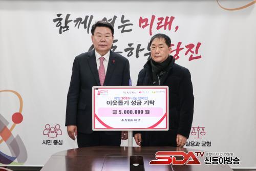 ¿À¼ºÈ¯ ´çÁø½ÃÀåÀº ¡°Áö¿ªÀÇ ¾ÈÀü°ú ÆíÀǸ¦ Ã¥ÀÓÁö´Â ±â¾÷ÀÌ ³ª´®¿¡µµ ¾ÕÀå¼ Áּż °¨»çµå¸°´Ù¡±¸ç ¡°±âÅ¹ÇØ Áֽмº±ÝÀº µµ¿òÀÌ ²À ÇÊ¿äÇÑ ÀÌ¿ôµé¿¡°Ô ¼ÒÁßÈ÷ Àü´ÞÇϰڴ١±°í ¸»Çß´Ù.