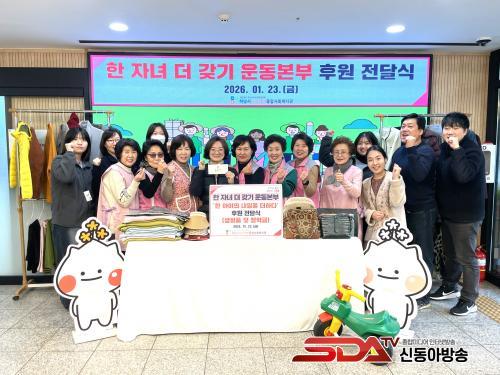 À̹ø¿¡ Àü´ÞµÈ »ýÇÊǰ°ú ÀåÇбÝÀº ÇÑ ÀÚ³à ´õ °®±â ¿îµ¿º»ºÎ ÀÓ¿ø°ú ȸ¿ø 32¸íÀÌ ÀÚ¹ßÀûÀ¸·Î ¹°Ç°À» ±âÁõÇϰí, Ãë¾à°èÃþ ÇѺθ𡤴ÙÀÚ³à °¡±¸¸¦ Áö¿øÇϱâ À§ÇÑ ¸ð±Ý Ȱµ¿À» ÅëÇØ ¸¶·ÃÇÑ °ÍÀ¸·Î, Áö¿ª»çȸ ³» ÀÌ¿ô °£ ¿¬´ë¿Í ³ª´®ÀÇ °¡Ä¡¸¦ µÇ»õ±â´Â °è±â°¡ µÉ °ÍÀ¸·Î ±â´ëµÈ´Ù.