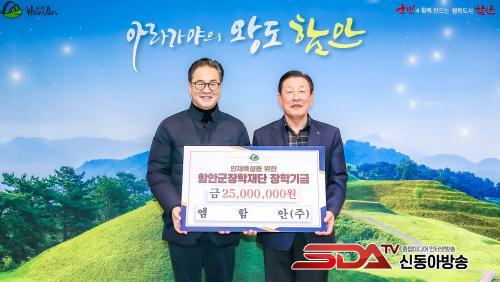 [½Åµ¿¾Æ¹æ¼Û °æ³²ÇÔ¾È=À̽ŵ¿±âÀÚ] ÇԾȱºÀº Áö³­ 5ÀÏ ¿¥ÇÔ¾È(ÁÖ)°¡ Áö¿ª ÀÎÀç À°¼ºÀ» À§ÇØ ÇԾȱºÀåÇÐÀç´Ü¿¡ ÀåÇбâ±Ý 2500¸¸ ¿øÀ» ±âŹÇß´Ù°í ¹àÇû´Ù.