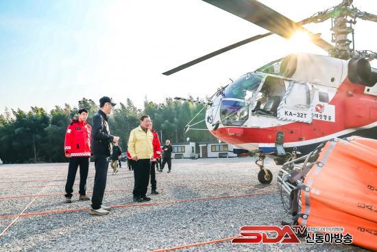 Á¶±ÙÁ¦ ÇԾȱº¼ö´Â Çï±â ±âÀå µî °ü°èÀÚµé°ú »ê¸²Àç³´ëÀÀ´Ü(»êºÒÀü¹®¿¹¹æÁøÈ´ë)ÀÇ ³ë°í¸¦ °Ý·ÁÇÏ°í »êºÒ ¹ß»ý ½Ã ½Å¼ÓÇÑ Çï±â Ã⵿À» À§ÇÑ Áغñ ż¼¿¡ ¾Ö·Î»çÇ×ÀÌ ¾ø´ÂÁö Á¡°ËÇß´Ù. ¶ÇÇÑ ´ëÇü »êºÒ·Î À̾îÁöÁö ¾Êµµ·Ï »êºÒ ÇöÀå¿¡¼ÀÇ °øÁßÁøÈ(Çï±âÆÀ)¿Í Áö»óÁøÈ(»ê¸²Àç³´ëÀÀ´Ü)°¡ ±ä¹ÐÇÑ °øÁ¶ ü°è¸¦ À¯ÁöÇØ »êºÒ ´ëÀÀ¿¡ Èû½á ÁÙ °ÍÀ» °Á¶ÇÏ¿´´Ù.