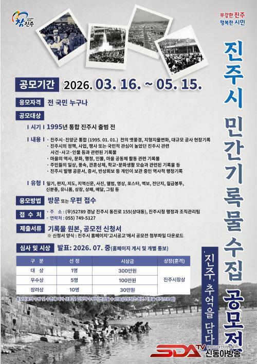 °ø¸ð ±â°£Àº 16ÀϺÎÅÍ ¿À´Â 5¿ù 15ÀϱîÁöÀÌ´Ù. Âü¿© Èñ¸ÁÀÚ´Â ÁøÁÖ½Ãû ´©¸®Áý ¡®°í½Ã¡¤°ø°í¡¯¶õ¿¡¼ ½Åû¼¸¦ ³»·Á¹Þ¾Æ ±â·Ï¹° ¿øº»°ú ÇÔ²² ÁøÁÖ½Ãû ÇàÁ¤°ú(Á¶Á÷°ü¸®ÆÀ)·Î ¹æ¹® ¶Ç´Â ¿ìÆíÀ¸·Î Á¢¼öÇÏ¸é µÈ´Ù.