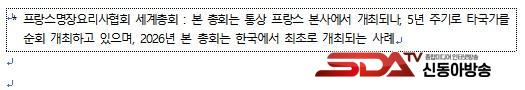À̹ø ¹æ¹®Àº 3¿ù 15ÀϺÎÅÍ 21ÀϱîÁö ¿¸®´Â 2026³â ÇÁ¶û½º¸íÀå¿ä¸®»çÇùȸ(MCF) ¼¼°èÃÑȸ*ÀÇ °ø½Ä ÇÁ·Î±×·¥ ÀÏȯÀ¸·Î ¸¶·ÃµÆ´Ù. ÃÑȸ¿¡ Âü°¡ÇÑ ¼¼°è °¢±¹ÀÇ ÇÁ¶û½º ¿ä¸® ¼ÎÇÁµéÀÌ ±¹³» ÁÖ¿ä ¼ö»ê¹° ½ÄÀç·á »ý»êÁö¸¦ ¹æ¹®ÇÏ´Â ÀÏÁ¤ÀÌ´Ù.