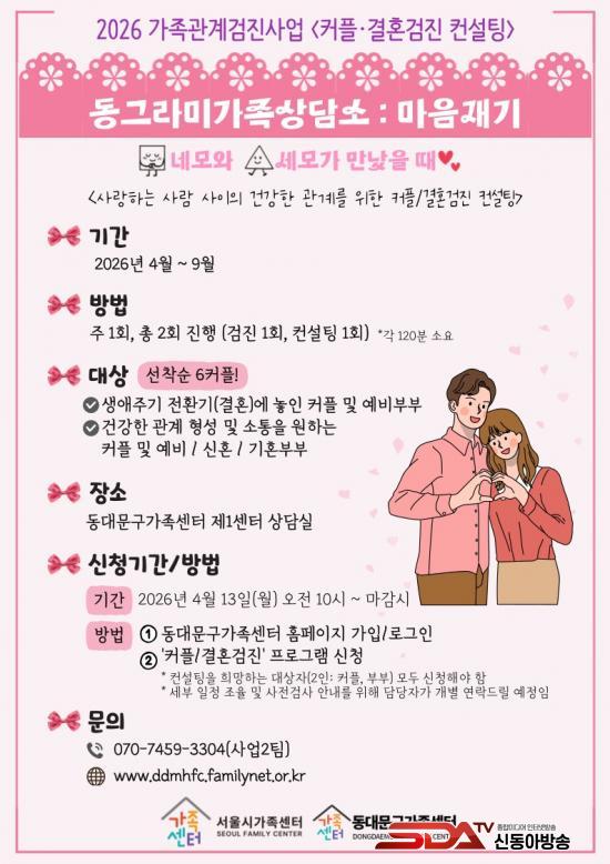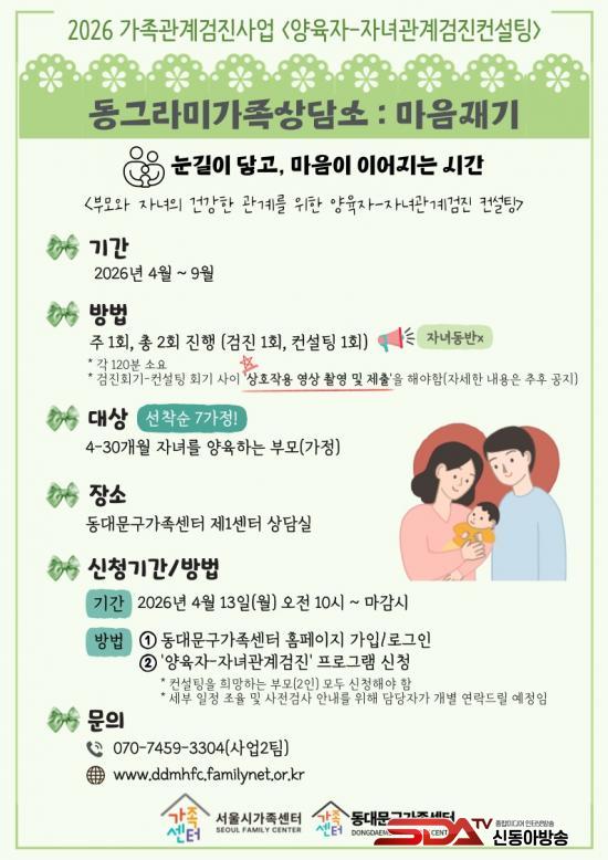 [½Åµ¿¾Æ¹æ¼Û µ¿´ë¹®±¸=À̽ŵ¿±âÀÚ] ¼­¿ï µ¿´ë¹®±¸´Â °Ç°­ÇÑ °¡Á·°ü°è Çü¼º°ú ÀÇ»ç¼ÒÅë ÁõÁøÀ» À§ÇØ ¡®2026 °¡Á·°ü°è°ËÁø»ç¾÷¡¯À» º»°Ý ¿î¿µÇÑ´Ù°í ¹àÇû´Ù.