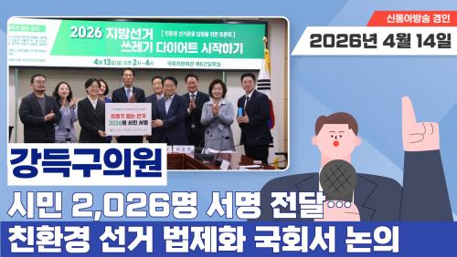 ´õºÒ¾î¹ÎÁÖ´ç °µæ±¸ ÀÇ¿ø(°æ±â ¾È¾ç¸¸¾È, ÃÖ°íÀ§¿ø)Àº 13ÀÏ ¿ÀÈÄ 2½Ã ±¹È¸ÀÇ¿øÈ¸°ü¿¡¼ '2026 Áö¹æ¼±°Å, ¾²·¹±â ´ÙÀÌ¾îÆ® ½ÃÀÛÇϱâ: ģȯ°æ ¼±°Å¿îµ¿ ÀÔ¹ýÀ» À§ÇÑ Åä·Ðȸ'¸¦ °³ÃÖÇß½À´Ï´Ù. ÀÇ¿ø 17¸íÀÌ °øµ¿ ÁÖÃÖÇÏ°í ¾²·¹±â¼¾ÅÍ, ¹Ì·¡´çÀÌ ÁÖ°üÇÑ À̹ø Çà»ç¿¡¼´Â ÀüÀÚ°øº¸¹° µµÀÔÀ» Ã˱¸ÇÏ´Â ½Ã¹Î 2,026¸íÀÇ ¼¸í Àü´Þ½Äµµ ÇÔ²² ÁøÇàµÆ½À´Ï´Ù.