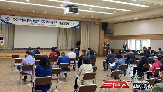 »çÁø=Áö³­ 21ÀÏ ¿©¼ö½Ãû ȸÀǽǿ¡¼­ ¿­¸° ¡®2030 °ü±¤Á¾ÇÕ¹ßÀü°èȹ ¹× 2026¿©¼ö¼¼°è¼¶¹Ú¶÷ȸ ±âº»°èȹ ¿¬±¸¿ë¿ª ÇÕµ¿ ½Ã¹Î¼³¸íȸ¡¯¿¡¼­ ±Ç¿ÀºÀ ¿©¼ö½ÃÀåÀÌ Àλ縻¾¸À» Çϰí ÀÖ´Ù.