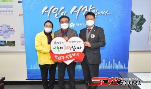 [½Åµ¿¾Æ¹æ¼Û=Ç㳪¿µ ±âÀÚ] ¾ç»ê½Ã ±èÀϱǽÃÀå°ú ÀÓ±ººó ´ëÇÑÀû½ÊÀÚ»ç°æ»ó³²µµÁö»ç »ç¹«Ã³Àå ¹× ´ëÇÑÀû½ÊÀÚºÀ»çȸ ¾ç»êÁö±¸ÇùÀÇȸ °ü°èÀÚ°¡ Âü¼®ÇÑ °¡¿îµ¥ Àû½ÊÀÚ Æ¯º°È¸ºñ Àü´Þ½ÄÀ» °¡Á³´Ù.