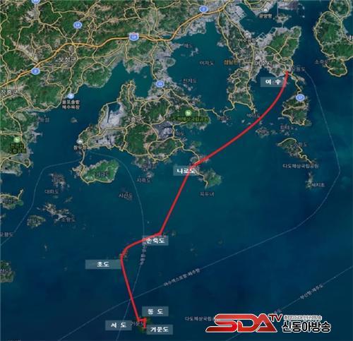 ¿©¼ö~°Å¹® Ç׷δ ¿©¼ö, ³ª·Îµµ, ¼ÕÁ×µµ, Ãʵµ, µ¿µµ, ¼µµ, °Å¹®µµ¸¦ ±âÇ×Çϸç, ÃÑ ¿îÇװŸ® 105.6§°·Î ÇöÀç ¿îÇ× ÁßÀÎ Äè¼Ó¼±À» ±âÁØÀ¸·Î ¿îÇ׽ð£ÀÌ 2½Ã°£ 20ºÐÀÌ ¼Ò¿äµÈ´Ù.