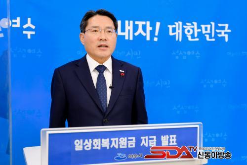 [½Åµ¿¾Æ¹æ¼Û=±è±â³² ±âÀÚ] ±Ç¿ÀºÀ ¿©¼ö½ÃÀåÀÌ 27ÀÏ ¿ÀÈÄ ½Ãû ¿µ»ó½Ç¿¡¼­ ºê¸®ÇÎÀ» ÅëÇØ ¡°Äڷγª19 ÀÏ»óȸº¹Áö¿ø±ÝÀ» Àü ½Ã¹Î¿¡°Ô 1Àδç 20¸¸ ¿ø¾¿ Áö±ÞÇϰڴ١±°í ¹àÇû´Ù.