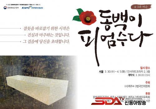 (»ç)Á¦ÁÖ4‧3¹ü±¹¹ÎÀ§¿øÈ¸°¡ °ü·Ã ´Üüµé°ú ÇÔ²² ÁÖ°üÇϰí, ¹®ÈüÀ°°ü±¤ºÎ, Á¦ÁÖ4¡¤3ÆòÈÀç´Ü, ³ë¹«ÇöÀç´Ü(Á¦ÁÖ), ¿¬¼¼´ëÇб³ ±è´ëÁßµµ¼°üÀÌ ÈÄ¿øÇÏ´Â <4370+4 µ¿¹éÀÌ ÇǾö¼ö´Ù>´Â ¿À´Â 3¿ù 30ÀÏ(¼ö)ºÎÅÍ 4¿ù 5ÀÏ(È)±îÁö ¼¿ï ÀÎ»ç¾ÆÆ®ÇÁ¶óÀÚ(2,3Ãþ)¿¡¼ ÁøÇàµÈ´Ù(30ÀÏ(¼ö) ¿ÀÈÄ 3½Ã °³¸·½Ä).