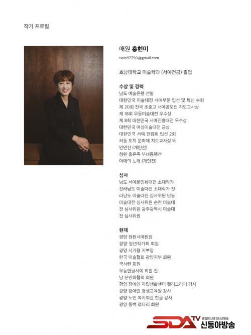 È«Çö¹Ì ÀÛ°¡´Â ±¤¾çû³âÀÛ°¡È¸ ȸÀå°ú »ç´Ü¹ýÀÎ Çѱ¹¹Ì¼úÇùȸ ±¤¾çÁöºÎ ȸ¿øÀ¸·Î Ȱµ¿ ÁßÀ¸·Î ÈÄÇÐ ¾ç¼º°ú Àå¾ÖÀÎÀÇ ¹®È­¿¹¼ú Ȱµ¿À» À§ÇØ ³ë·ÂÇϰí ÀÖÀ¸¸ç, ºÎÄ£ÀΠû¿ø È«Àº¿Á ÀÛ°¡ÀÇ µÚ¸¦ ÀÌ¾î ¼­¿¹°¡·Î¼­ ÀÛǰ Ȱµ¿À» ²ÙÁØÈ÷ ÇØ¿À°í ÀÖ´Ù.