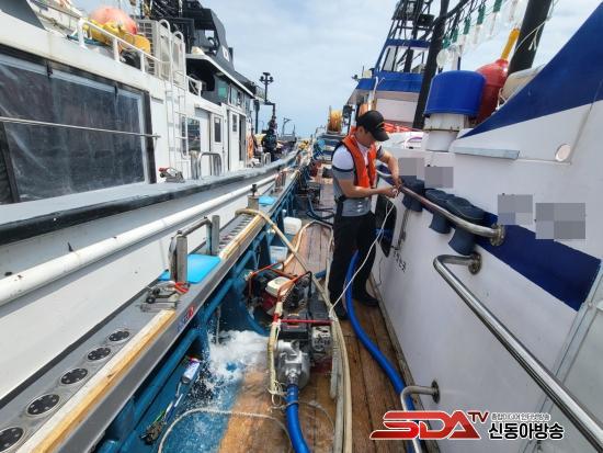 ÇØ°æÀº ³¬½Ã¾î¼± AÈ£°¡ ¼öÁß ¾ÏÃÊ¿¡ ºÎµúÇô ±â°ü½Ç ¼±Àú ºÎºÐ ÆÄ°øÃßÁ¤À¸·Î ħ¼ö°¡ ÁøÇàµÇ°í ÀÖ´Â »óÅ·Π»ç°í¼±¹Ú Á¡¤¿ìÇö¿¡ ´Ù¸¥ ³¬½Ã¾î¼± 2ôÀ» °í¹Ú ¹× ¹è¼öÀåºñÀÌ¿ë ¹è¼öÀÛ¾÷ ÁøÇà°ú ÇÔ²² ¹é¾ßÇ×À¸·Î ¾ÈÀüÇÏ°Ô ¿¹ÀÎÇØ ÀÀ±Þ¹æ¼ö ¹× ¼ö¸®¸¦ ÁøÇàÇÒ ¿¹Á¤ÀÌ´Ù.