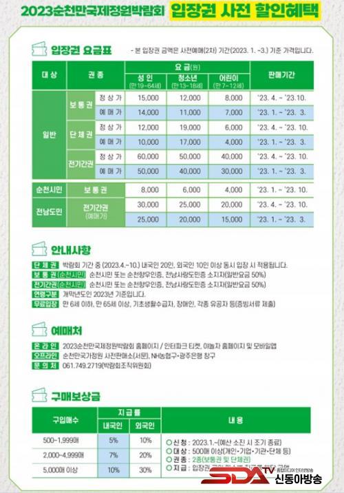 2023¼øÃµ¸¸±¹Á¦Á¤¿ø¹Ú¶÷ȸ ¿¹¸Å ÀÔÀå±ÇÀº ¹Ú¶÷ȸ ´çÀÏ ÀÔÀåÀÌ °¡´ÉÇÑ ¡®º¸Åë±Ç¡¯°ú Àü ±â°£ ÀÚÀ¯ ÀÔÀåÀÌ °¡´ÉÇÑ ¡®Àü±â°£±Ç¡¯ÀÌ ÀÖ´Ù. ÇÒÀÎ ÇýÅÃÀÌ Àû¿ëµÈ º¸Åë±ÇÀº Á¤»ó°¡¿¡¼ 1õ¿øÀ» ÇÒÀÎÇØ ¼ºÀÎ 1¸¸ 4õ¿ø, û¼Ò³â 1¸¸ 1õ¿ø, ¾î¸°ÀÌ 7õ¿ø¿¡ ÆÇ¸ÅÇÑ´Ù. ¼øÃµ½Ã¹ÎÀÇ °æ¿ì ¿ì´ë¿ä±ÝÀ» Àû¿ëÇØ ¼ºÀÎ 8õ¿ø, û¼Ò³â 6õ¿ø, ¾î¸°ÀÌ 4õ¿ø¿¡ º¸Åë±ÇÀ» ±¸¸ÅÇÒ ¼ö ÀÖ´Ù.
