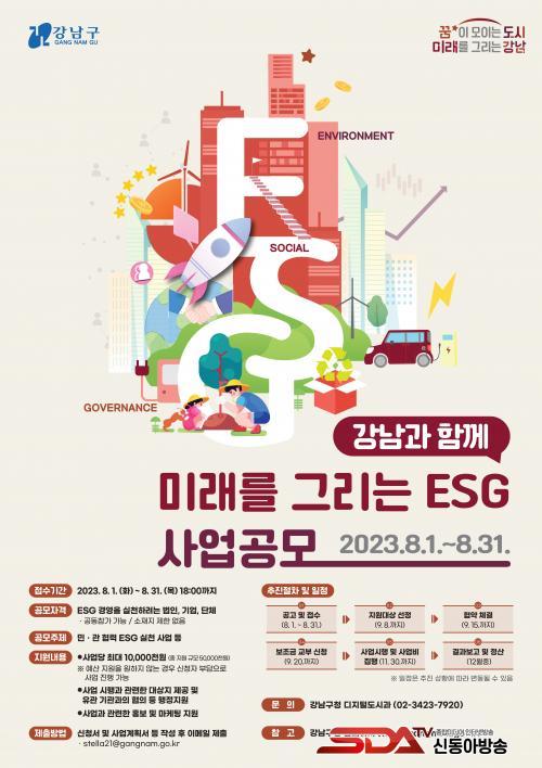 ESG °æ¿µÀ» ½ÇõÇÏ·Á´Â ¹ýÀÎ, ±â¾÷, ´Üü¶ó¸é ¼ÒÀçÁö Á¦ÇÑ ¾øÀÌ ´©±¸³ª Âü¿©ÇÒ ¼ö ÀÖÀ¸¸ç ¿©·¯ ±â¾÷ °£ °øµ¿Âü°¡µµ °¡´ÉÇÏ´Ù. °ø¸ð ÁÖÁ¦´Â ¹Î°üÀÌ Çù·ÂÇÒ ¼ö ÀÖ´Â ESG»ç¾÷ ºÐ¾ß·Î ȯ°æ(ÀÚ¿ø¼øÈ¯, ±âÈĺ¯È, ¿¡³ÊÁö Àý°¨) »çȸ(¾ÈÀü, º¹Áö, ±³À°, ¹®È), °Å¹ö³Í½º(¹ÎÁÖÀû ÀÇ»ç°áÁ¤, Åõ¸í°æ¿µ) µîÀÌ´Ù.