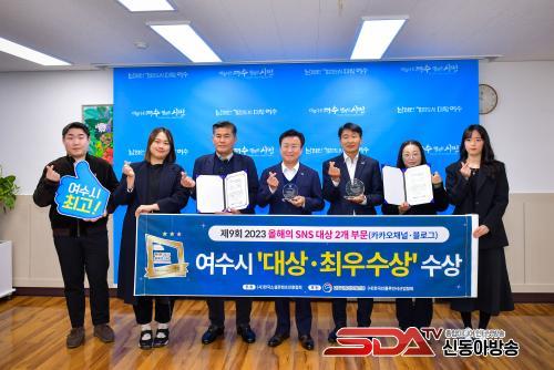 ¿©¼ö½Ã°¡ Áö³­ 10¿ù 'Á¦13ȸ 2023 ´ëÇѹα¹ SNS ´ë»ó'¿¡¼­ 8³â ¿¬¼Ó ÃÖ¿ì¼ö»óÀ» ¼ö»óÇѵ¥ À̾î, ¡®Á¦9ȸ 2023 ¿ÃÇØÀÇ SNS¡¯¿¡¼­µµ īī¿À ä³Î°ú ºí·Î±× ºÎºÐ¿¡¼­ °¢°¢ ´ë»ó°ú ÃÖ¿ì¼ö»óÀ» ¼ö»óÇÏ°Ô µÈ °Í.